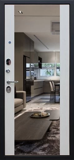 Надежная входная Дверь Вектор с зеркалом премиум класса по цене 49 197 руб. Большая толщина стали защитит от проникновения в ваш дом, квартиру или коттедж. Используется очень качественная фурнитура: замки, цилиндры, ручки, защелки. Покрытие и отделка двери изготовлено под внимательным контролем производителя. Дверь имеет долгий срок службы и гарантию.
