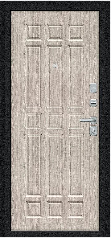 Надежная входная Дверь Браво Мило МФ/BChrome Букле черное/Cappuccino Melinga премиум класса по цене 33 547 руб. Большая толщина стали защитит от проникновения в ваш дом, квартиру или коттедж. Используется очень качественная фурнитура: замки, цилиндры, ручки, защелки. Покрытие и отделка двери изготовлено под внимательным контролем производителя. Дверь имеет долгий срок службы и гарантию.