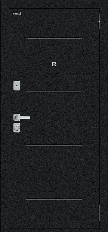 Надежная входная Дверь Браво Техно/BChrome Букле черное/Bianco Melinga премиум класса по цене 35 047 руб. Большая толщина стали защитит от проникновения в ваш дом, квартиру или коттедж. Используется очень качественная фурнитура: замки, цилиндры, ручки, защелки. Покрытие и отделка двери изготовлено под внимательным контролем производителя. Дверь имеет долгий срок службы и гарантию.